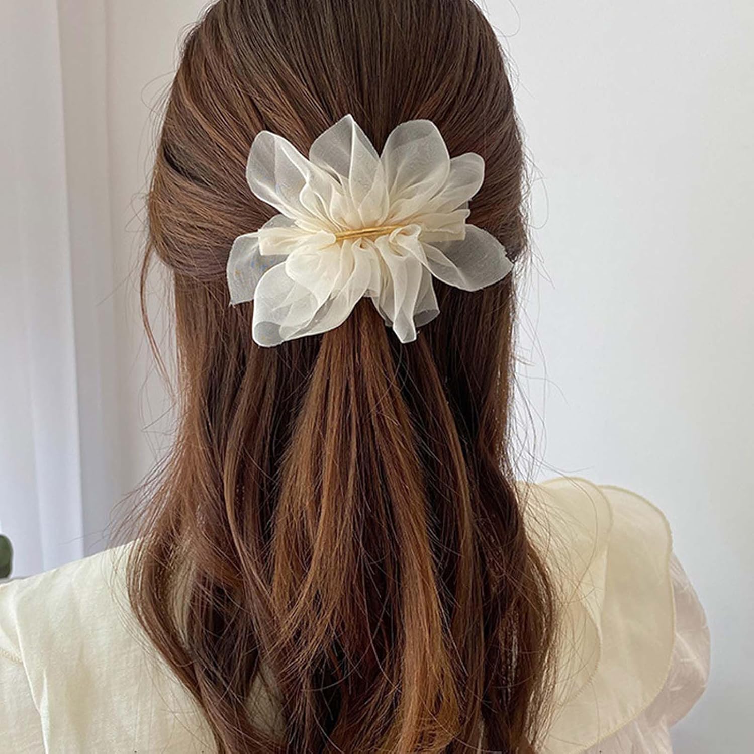 Premium Material: Made from high-quality chiffon fabric, these hair clips are soft, lightweight, and durable; The gold-toned metal barrette base ensures a secure grip, keeping your hairstyle in place throughout the day.