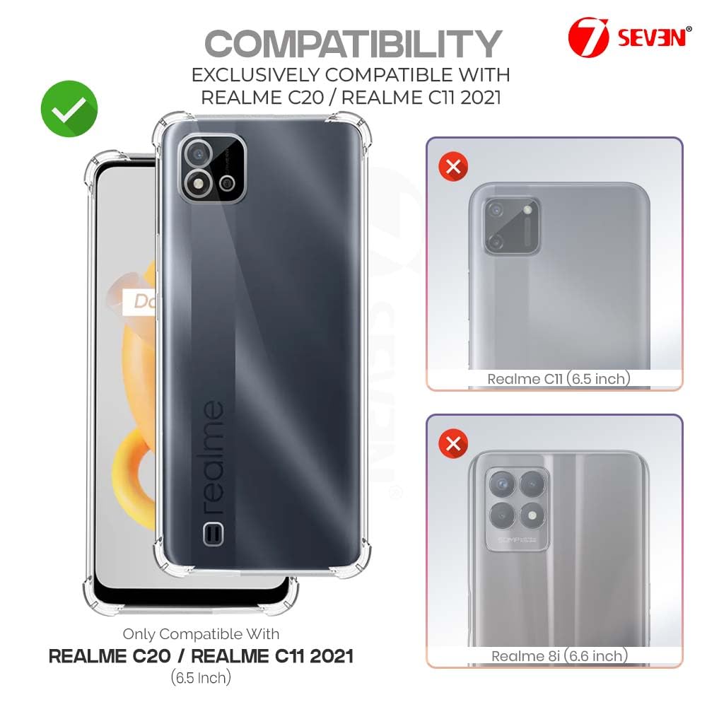 7SEVEN® Back Cover for Realme C20 | C11 2021 Transparent Mobile Back Case Shock Proof Design Camera Edges Protection Crystal Clear Phone Case Silicon Soft TPU and Flexible Bumper Phone Cover