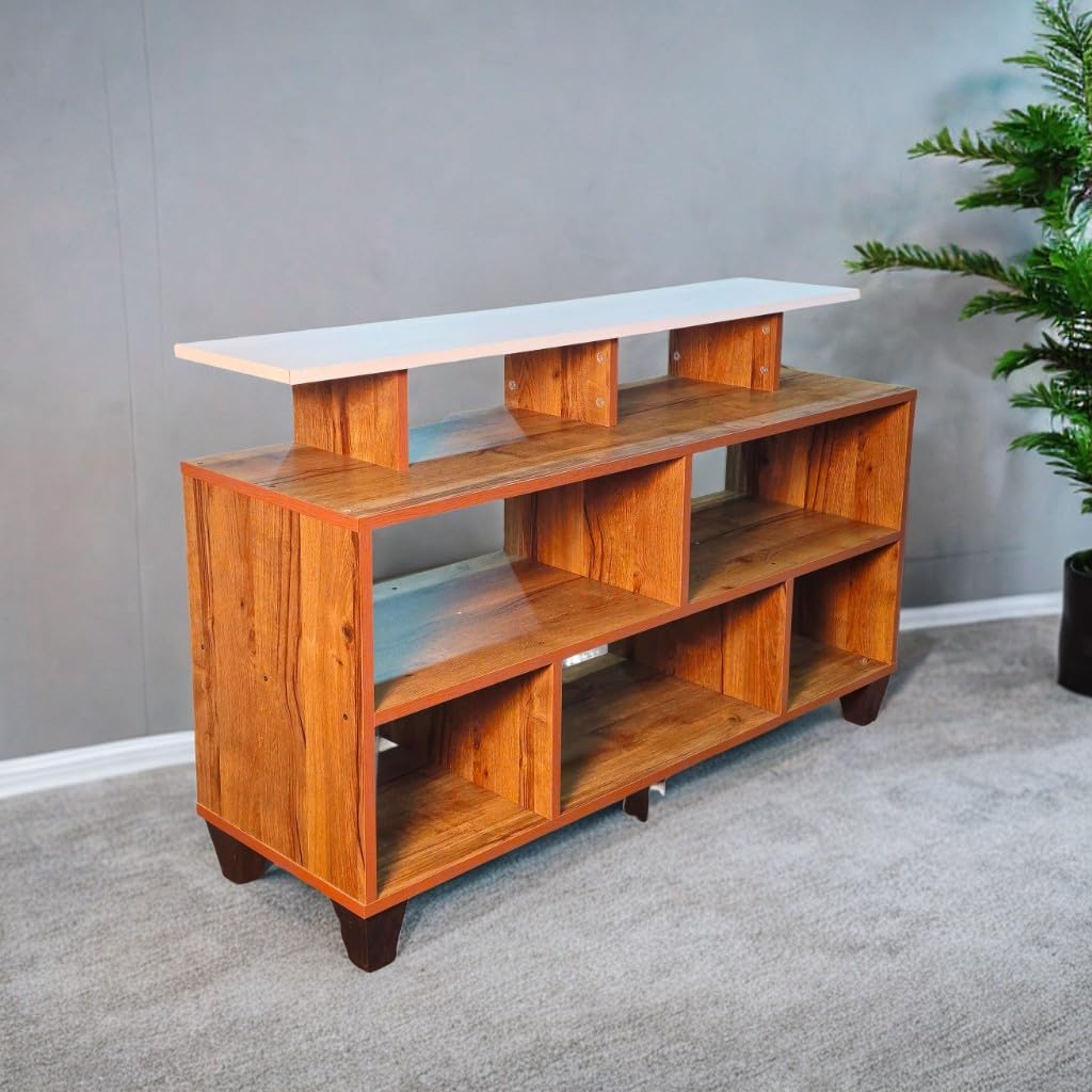 AAROORA Engineered Wood Large TV Table | Entertainment Unit Display Storage Cabinet Rack | Visual Feature of a Room | Comfort and Usability (Walnut & White Finish), 120 cm , 40 cm , 75 cm