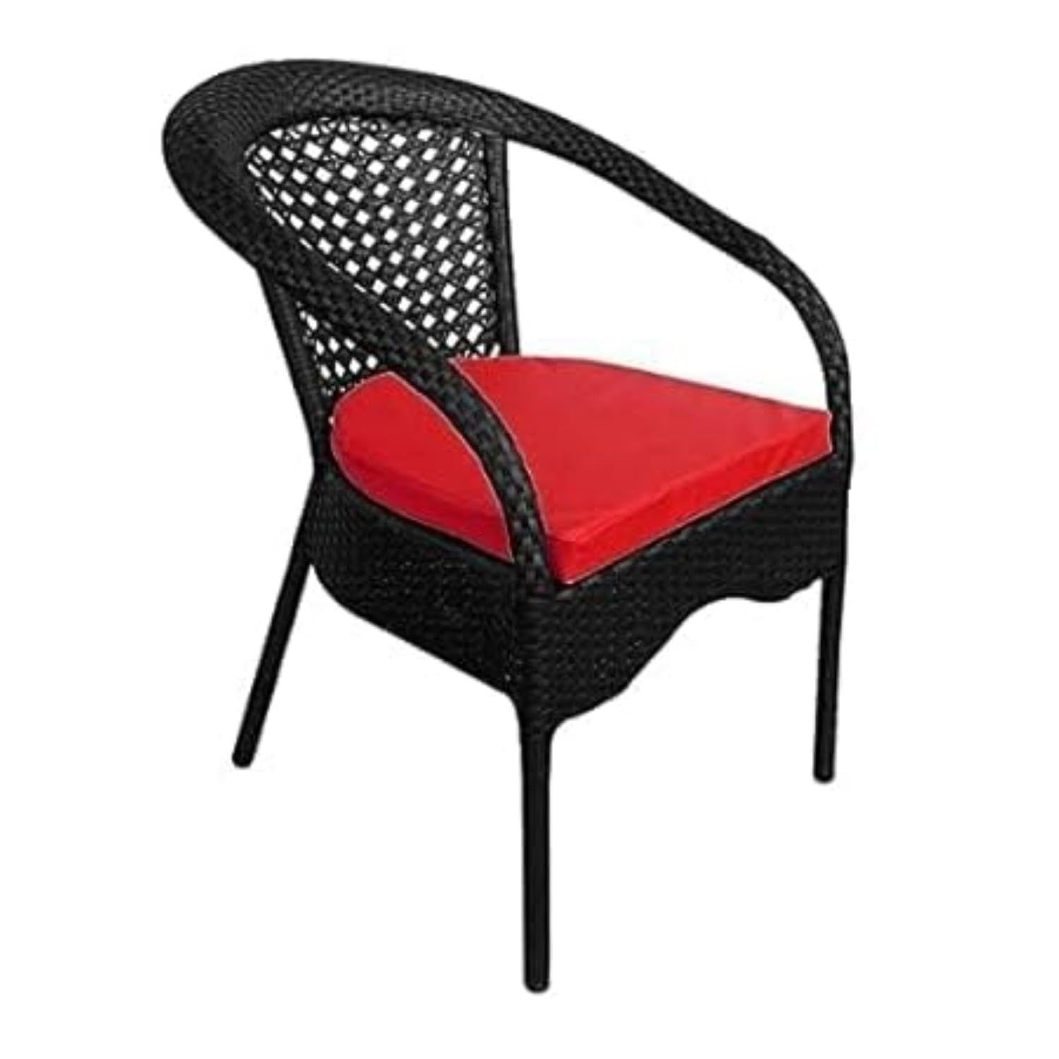 Aashvicraft D-8 Outdoor Indoor Patio Set Bistro Set Ratta Chair Patio Set Lawn Balcony Hall Outdoor Garden 4Chair 1 Table Set D-8 (Black+Red Cushion)