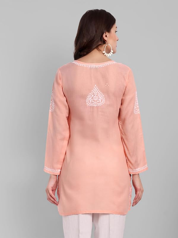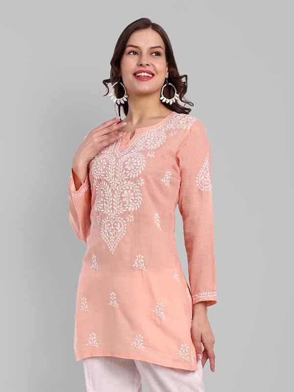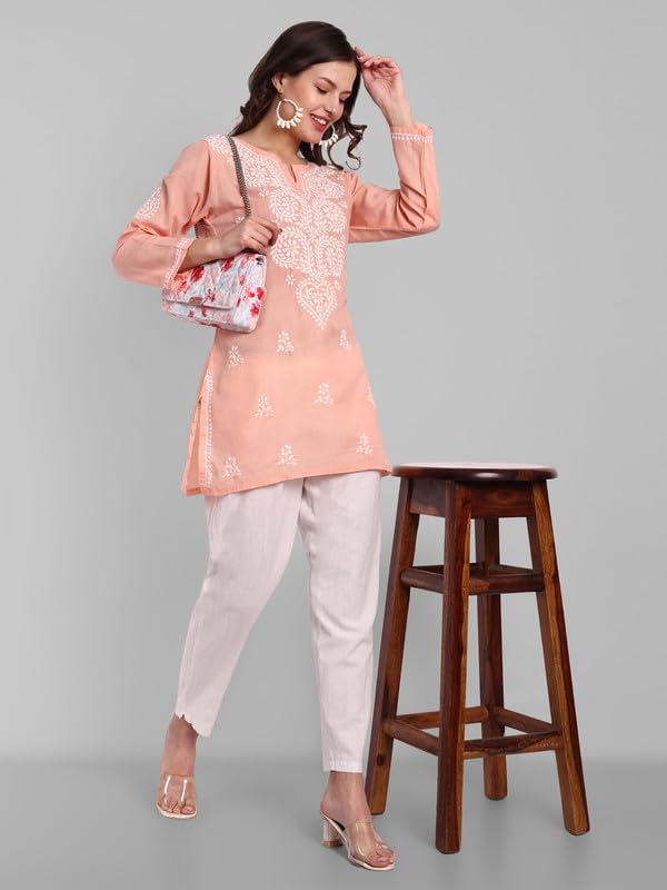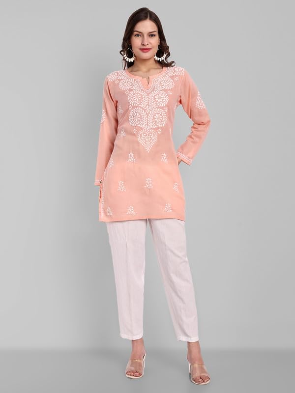Ada Women’s Cotton Straight Fit Straight Hand Embroidered Lucknowi Chikankari Short Kurti Top A911366