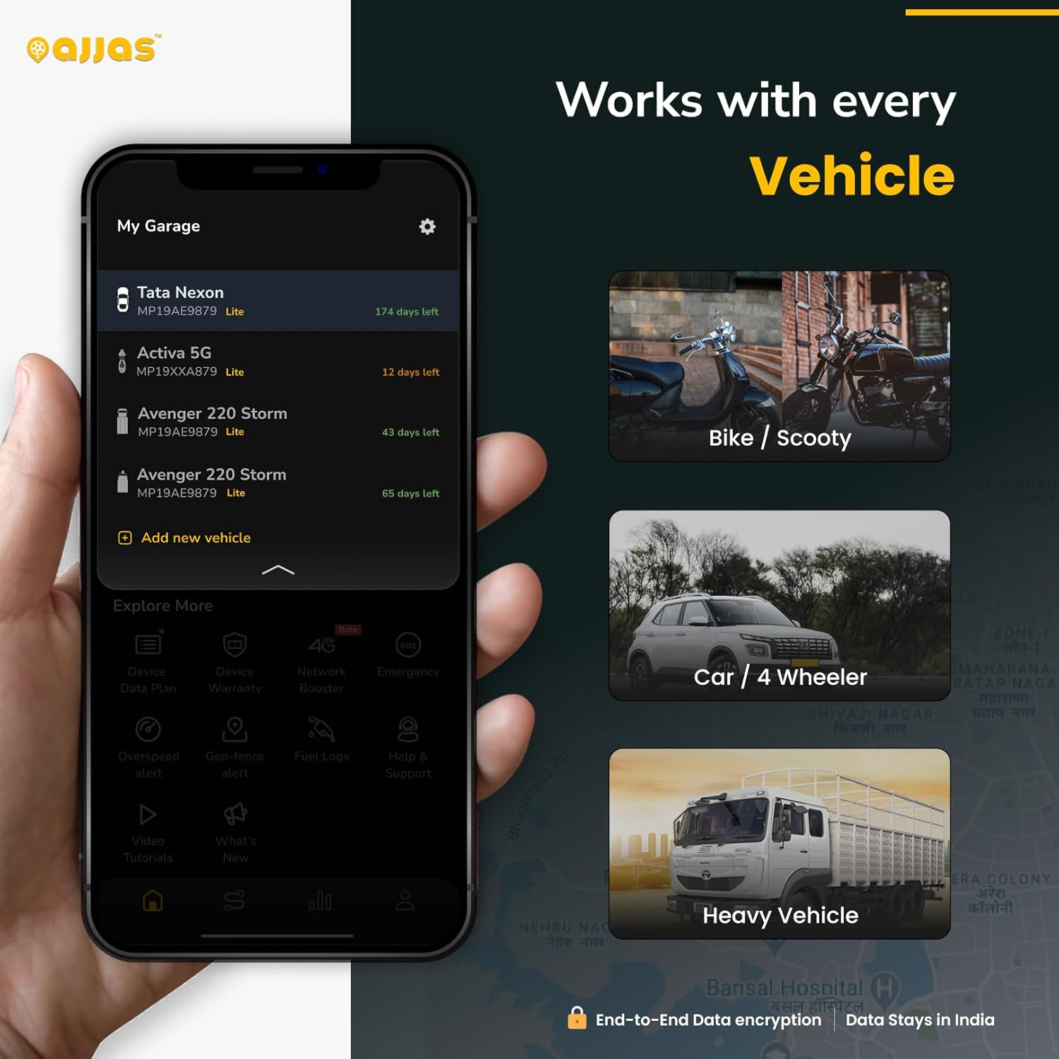 ✨Lowest Current Consumption : Ajjas lite consumes very less battery due to its sleep mode technology making it vehicle’s battery friendly.