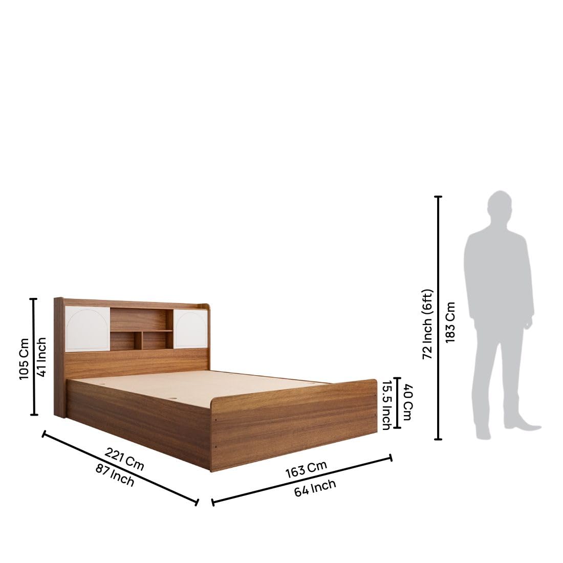 DIMENSIONS: Queen size bed measures 163 cm length x 221 cm width x 105 cm height, perfect for spacious bedrooms