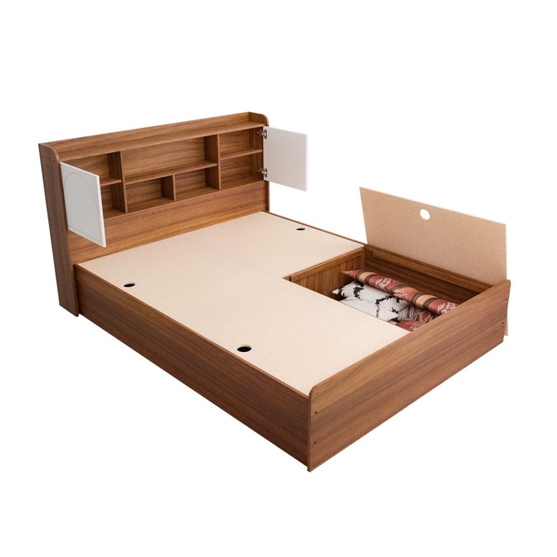 Amazon Brand – Solimo Amber Box Storage Bed, Queen Size, Leon Teak Finish, Multiple Door Options, with Headboard Storage (Leon Teak Arch Door, Queen)