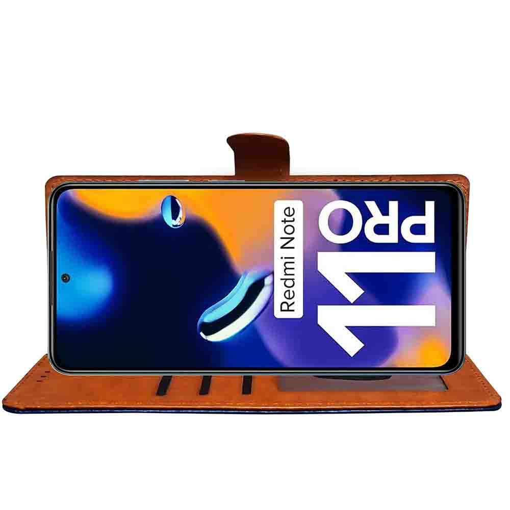 Amazon Brand-Solimo Flip Leather Mobile Cover (Soft & Flexible Back case) for Mi Redmi Note 11 Pro 5G (CamelBlue)