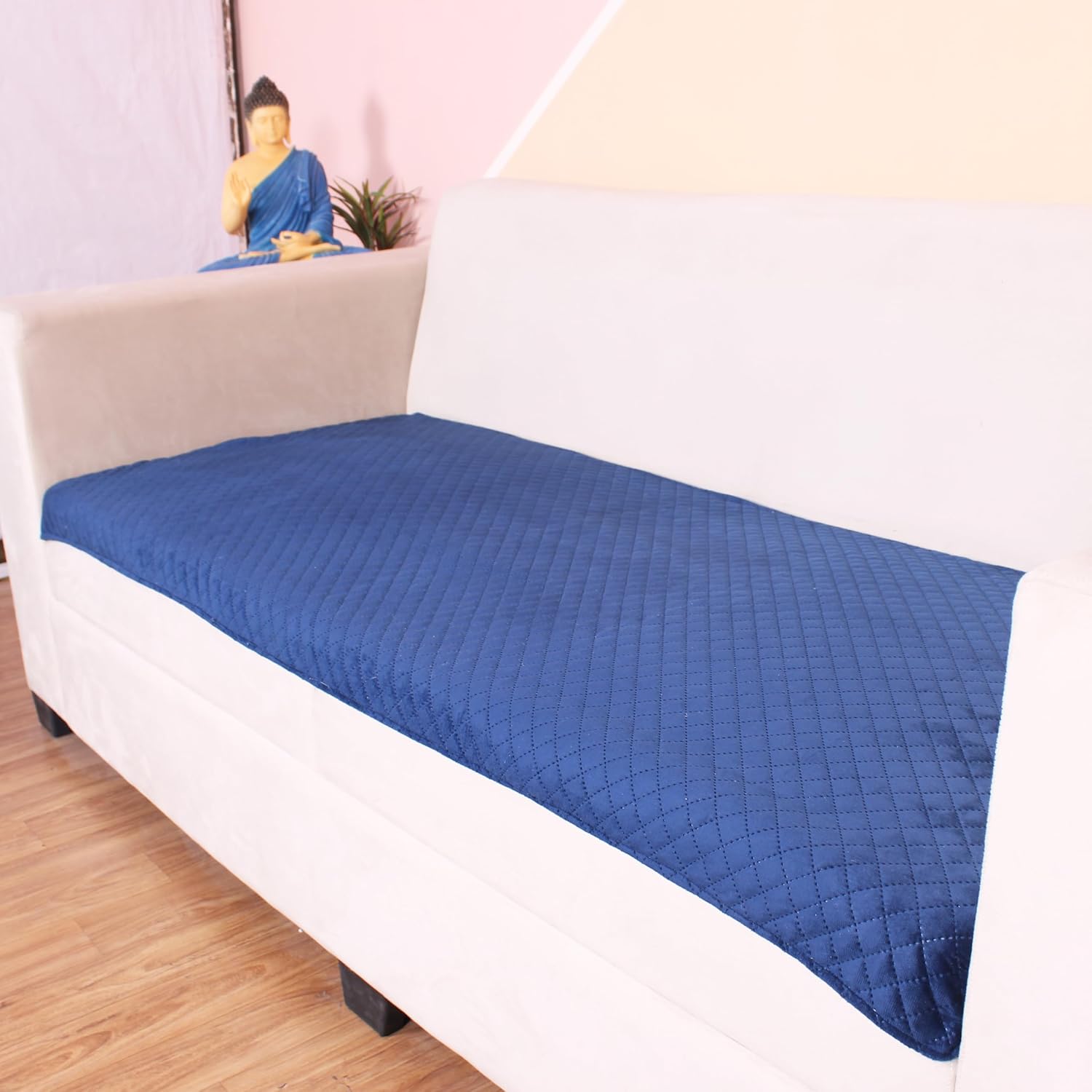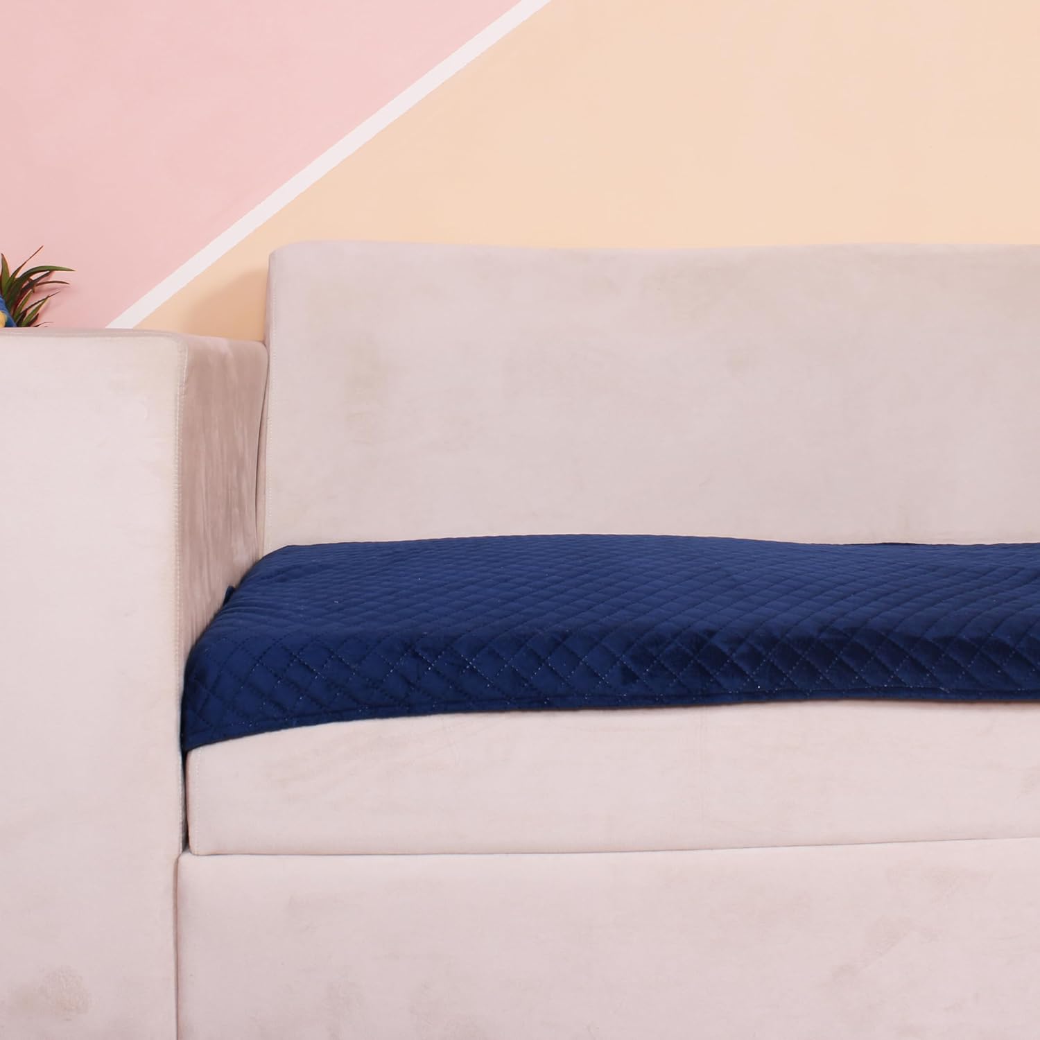 Amazon Brand – Umi 4 Seater Quilted Velvet Sofa Cover for Living Room | Washable | Furniture Protector for Pets & Kids | Blue Couch Slipcover for Home Décor (27x 92 Inches)