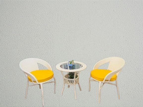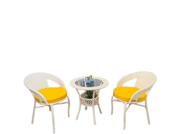 ANAND INDIA GROUPS 2 Chair 1 Table with Cushion for Outdoor, Indoor, Patio, Rattan Chair, Conversation Set, Living Room, Dining Room, Garden, Chair Set with Table (D-12 Off White & Yellow 2+1)