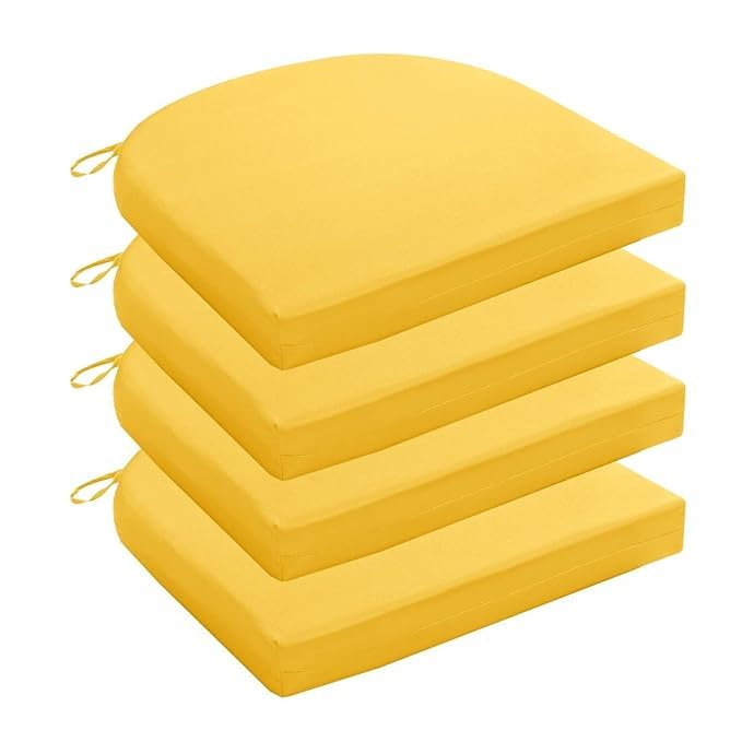 The ANAND INDIA GROUPS set transforms standard chairs into stylish and comfortable seating. Elevate your comfort and style Cushion For Indoor/Outdoor Universal Chair Cushions. Made from durable olefin fabric, these cushions are designed to resist UV rays, water, and stains, making them perfect for any weather. The superior recycled polyester fiber filling ensures quick drying and exceptional softness, while the secure ties keep your cushions in place. Reversible and easy to clean, they enhance both indoor and outdoor spaces with their chic design and versatile functionality. Ideal for patios, poolside lounging, or dining areas. Enjoy superior support with 2-inch memory foam padding and high-density polyester fabric that combines durability with luxurious comfort.