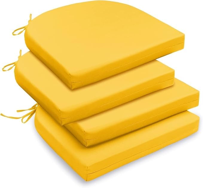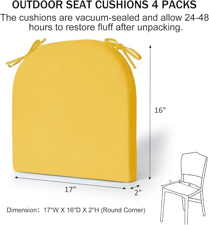 ANAND INDIA GROUPS D-8 Round Outdoor Bistro Chair Cushions Set of 4, Waterproof Cushions for Outdoor Furniture, Round Seat, Pads with Ties for Patio, Garden, Dining Chairs, Living Room (Yellow)