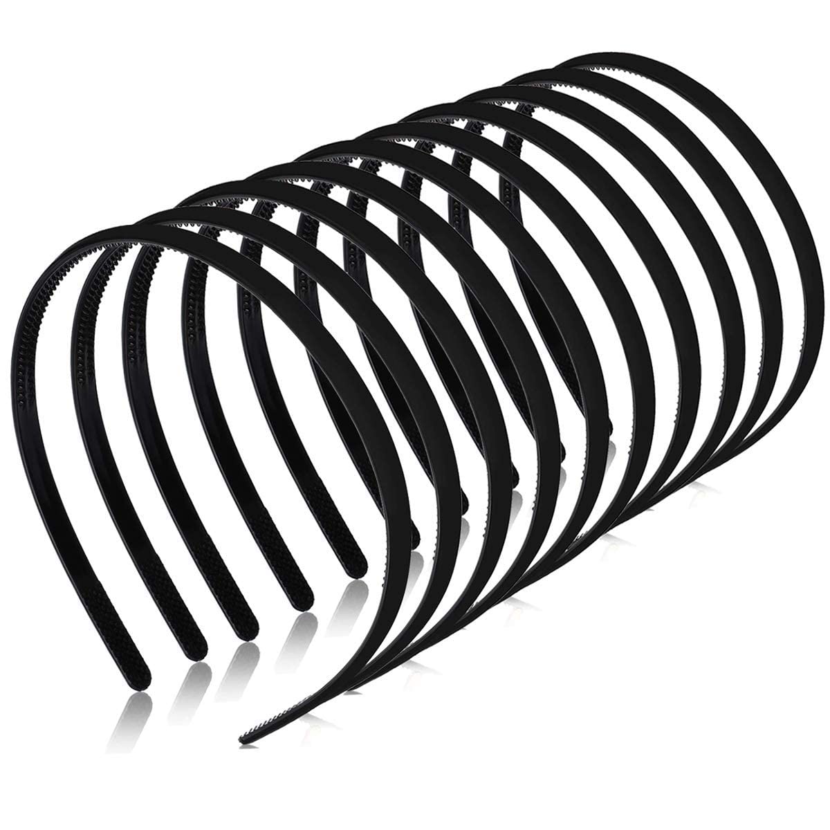 ANNA CREATIONS Solid Plain Thin Plastic Headbands with Teeth – Pack of 12 | DIY Craft, Sports Hair Bands for Women, Men, Girls, Teens, Kids – Durable, Lightweight Hair Accessories (Black, Medium)