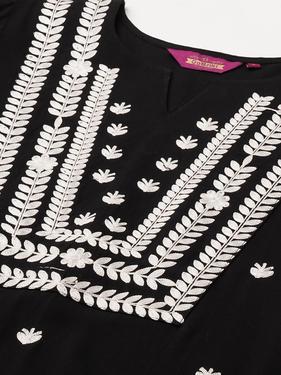 ANNI DESIGNER Women’s Cotton Blend Straight Chikankari Embroidered Kurta (STHO-BLACK-GRT_XXL_Black_XX-Large)