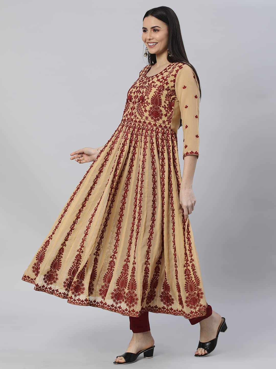 ANNI DESIGNER Women’s Georgette Chikankari Embroidered Anarkali Kurti (Kari Yellow-Nw1_L_Yellow_Large)