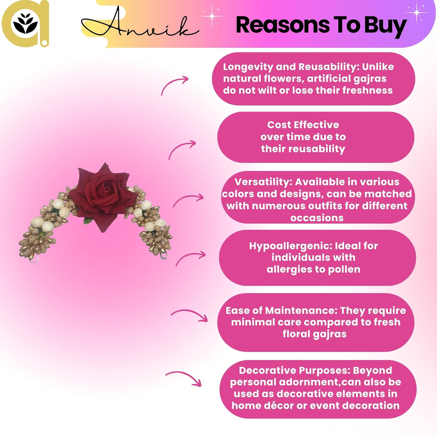 ANVIK Fancy Party Bridal Wedding Fabric/Artificial Flower Rose Bun Juda Hair Gajra for Women Flower Floral Hair Accessories for women Veni for hair(Maroon)