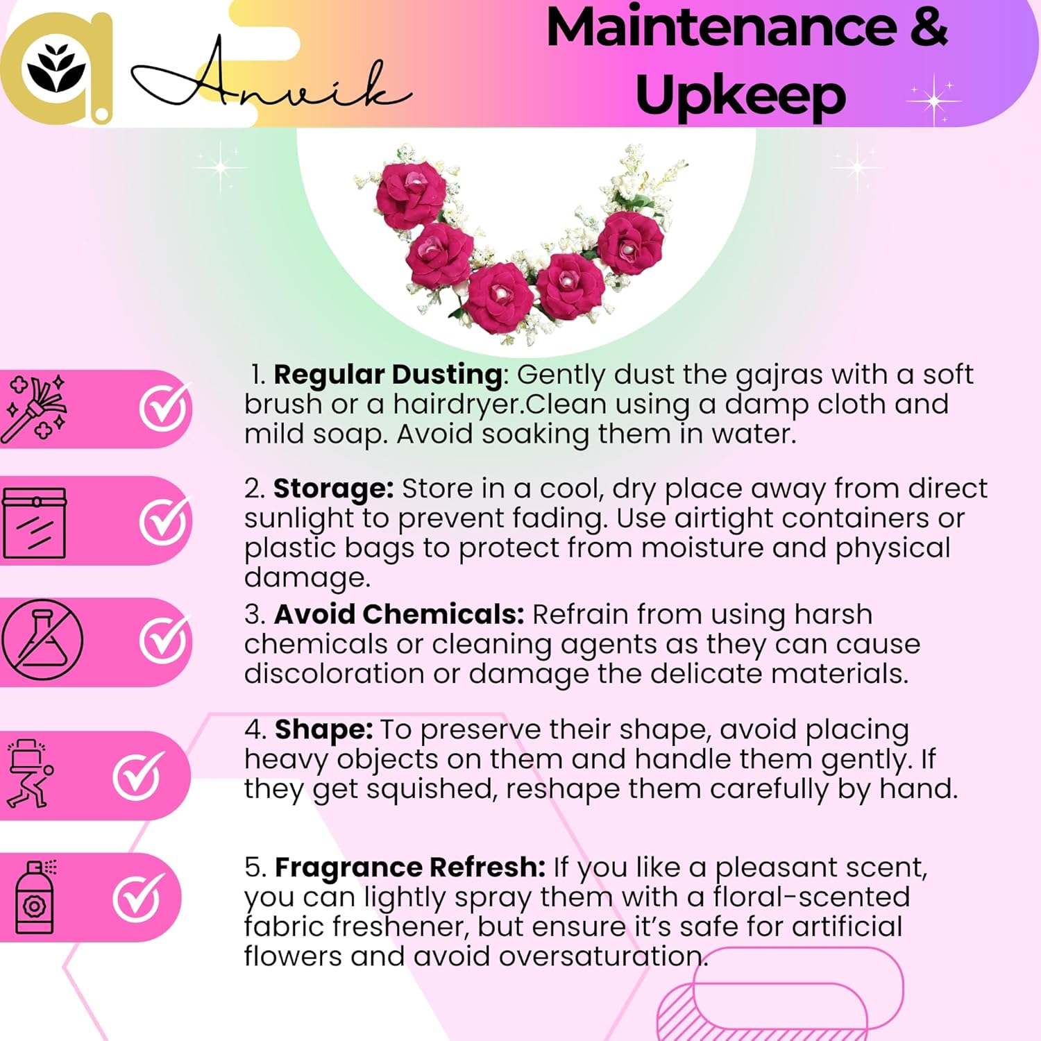 ANVIK Fancy Party Bridal Wedding Fabric/artificial Rose Flower Bun Juda Hair Gajra for Women Bride Floral Flower Hair Accessory for women Veni for hair (Rani Pink)