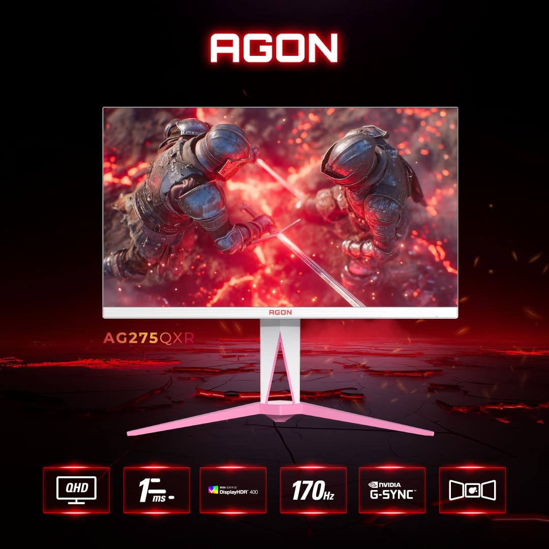 AOC AG275QXR 27″ QHD Gaming Monitor, 170Hz Refresh Rate, 1ms Response, G-Sync Compatible, IPS Panel, HDR400, Low Input Lag, 3-Sided Frameless, Light FX, HDMI & DisplayPort, Wide Viewing Angle