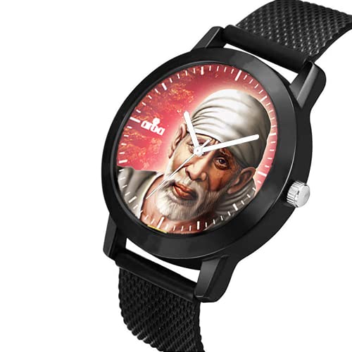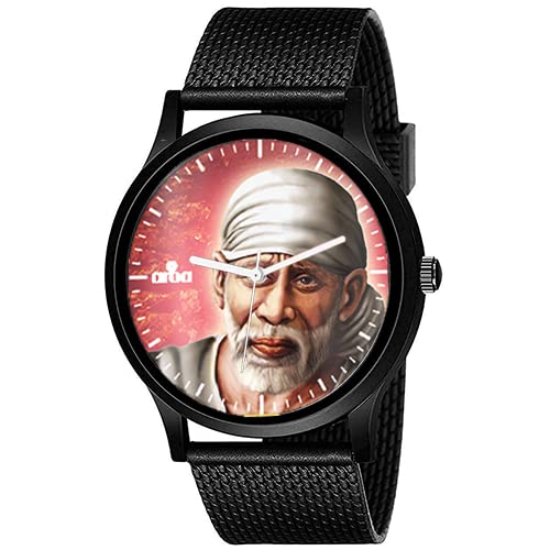 AROA Watch New Watch for Sai Baba Artwork Model : 630 Black Metal Type Analog Black Strap Watch Red Dial for Men Stylish Watch for Boys