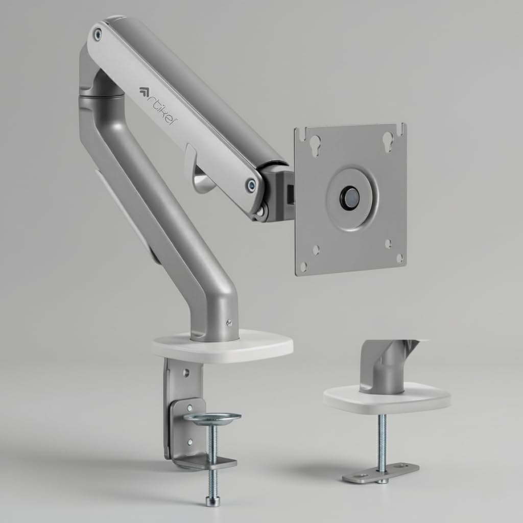 ARTIKEL Monitor Desk Mount | Adjustable Spring Assisted Monitor Arm | VESA Mount with C Clamp & Grommet Mounting Base | Computer Monitor Stand for Screen up to 32 inch | Economy Single Series | White
