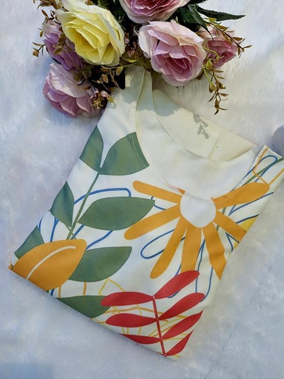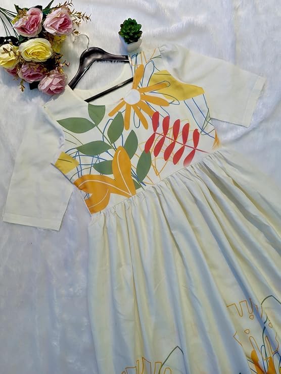 🌸 Soft, Breathable Cotton Fabric – Stay cool and comfortable all day long in lightweight, skin-friendly cotton. 🌼 Charming Floral Print – Eye-catching yellow and red flowers bring a fresh, cheerful vibe to your wardrobe. 👗 Classic Midi Length – Falls gracefully below the knee for a flattering, modest silhouette. 🧵 Short Sleeves & Casual Fit – Offers relaxed wear with a touch of elegance, ideal for warm weather. 🎨 Versatile Off-White Base – Neutral background makes accessorizing easy and stylish. Whether you’re strolling through a garden, heading to a casual event, or enjoying a day out with friends, this floral cotton midi dress is your go-to for effortless beauty and all-day ease.