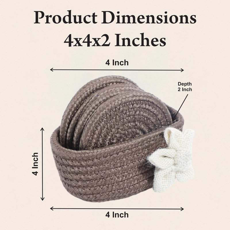 Enhance your table décor with beautifully woven 4-inch coasters designed for daily use. Each piece blends durability with artisanal charm, offering reliable protection from heat, moisture, and scratches. Perfect for homes, cafés, and office desks.