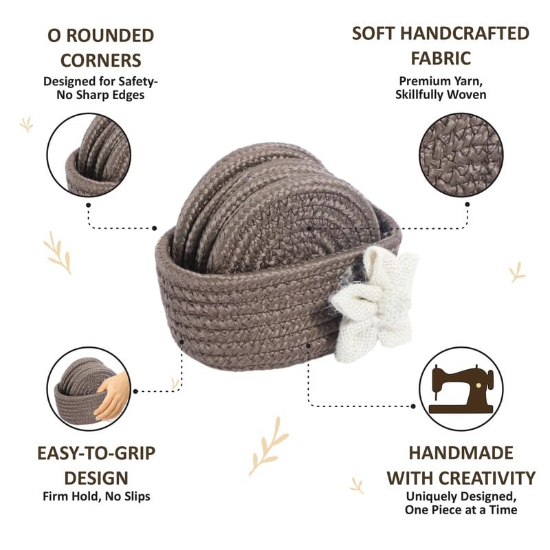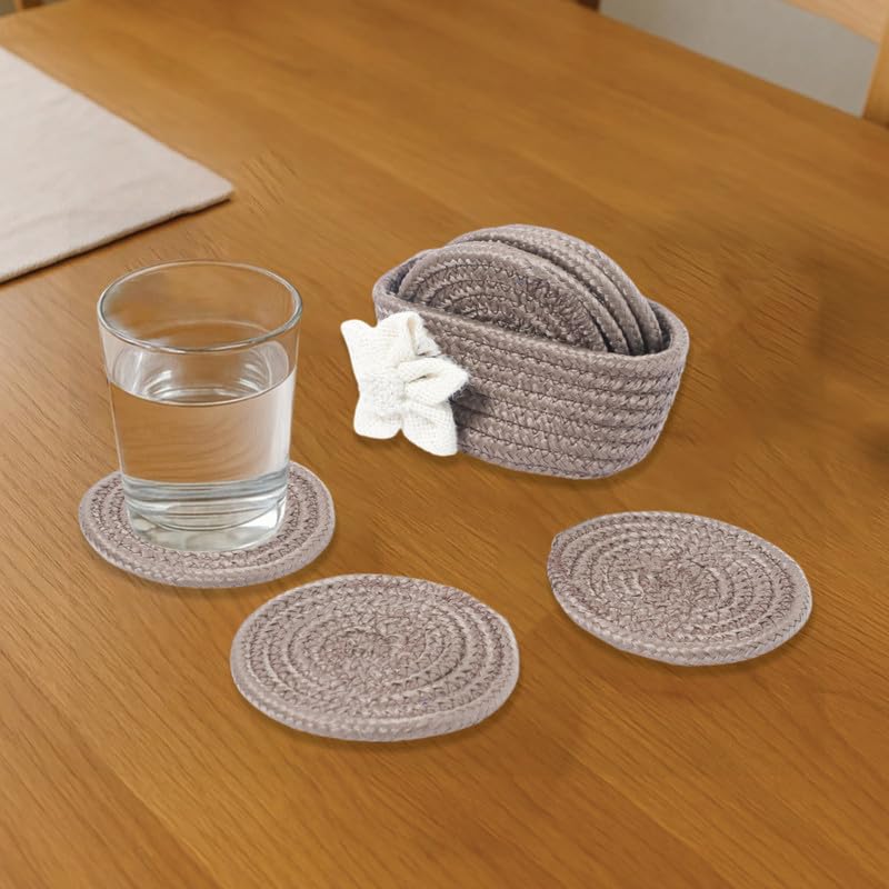 Skillfully handcrafted using high-quality yarn, these coasters deliver long-lasting performance with a refined textured finish. Their compact design fits all types of cups, mugs, and glasses while adding a stylish touch to any space.