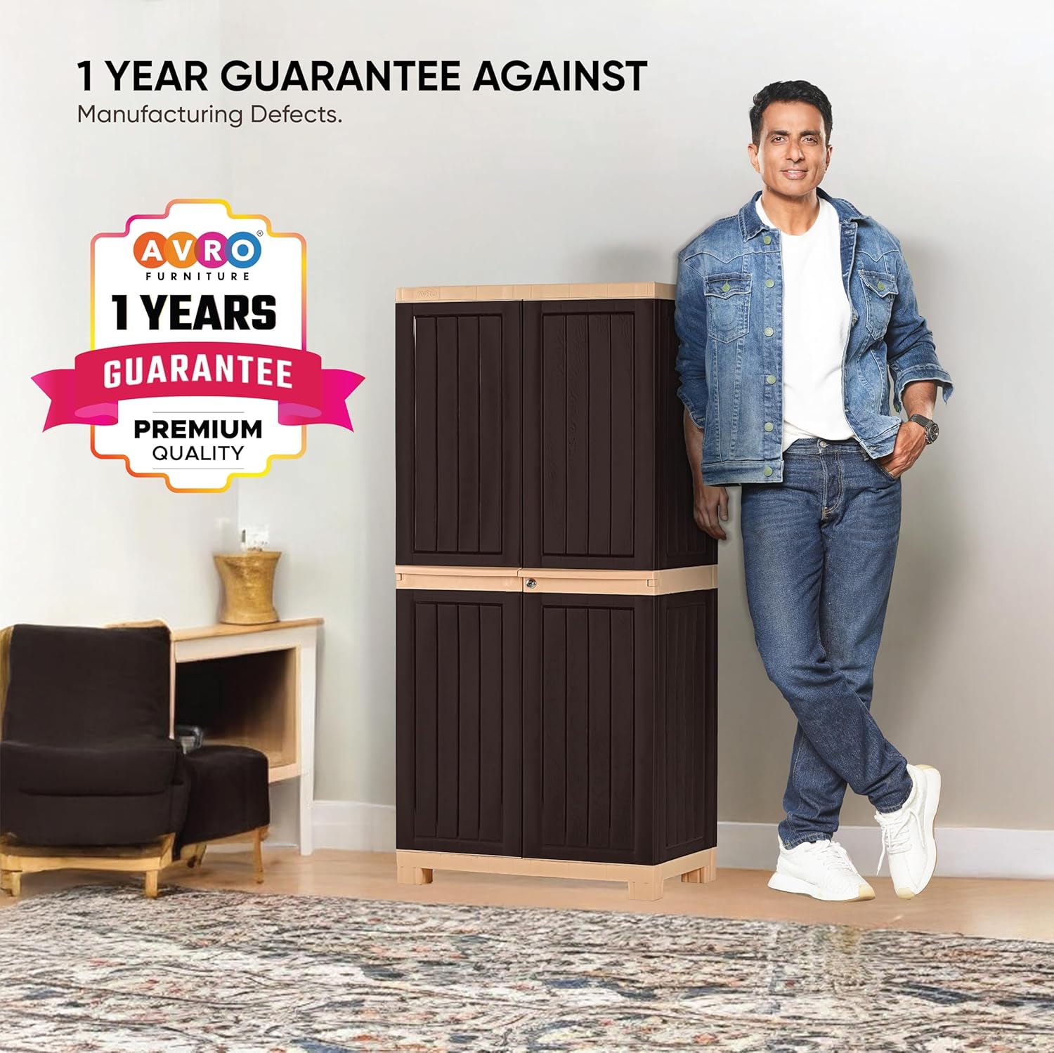 AVRO FURNITURE Star Plastic Cupboard for Storage, Multipurpose Wardrobe for Clothes, Crockery, Shoes & Files, Lightweight, Lockable, Dent Resistant, Rust Proof, Ideal for Home & Kitchen, Brown & Beige