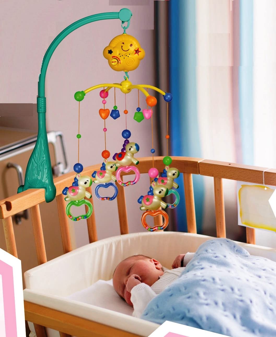 [Music & Light Cot Mobile]: A perfect hanging toy for cribs, cots, and cradles, providing auditory and visual stimulation that entertains and soothes babies during nap time or playtime.