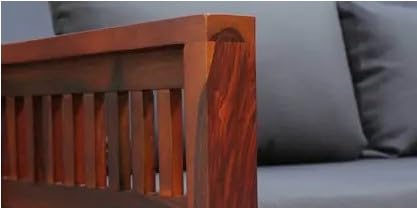 BEDOKI Solid sheesham Wood Wooden 2 Seater Sofa Set for Living Room | Sofa for Home with Cousins Seat | Home Furniture (Walnut Grey)