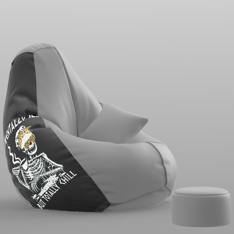 Biggie Bean Bag with Beans Filled XXXXXL Bean Bag with Free Cushion and Footrest – Official : PrintZen Combo (Matching Color : Printed, Totally Chill-Lt.Grey)