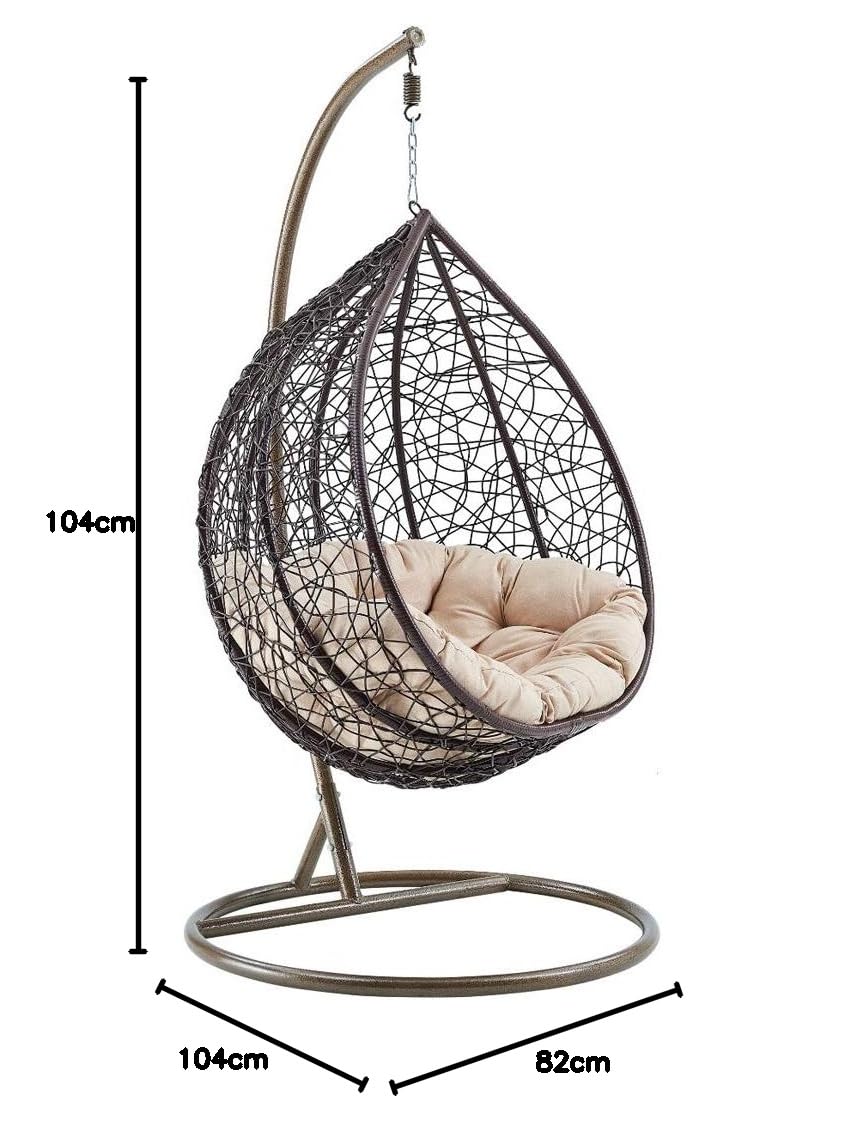 STAND AND CUSHIONS ARE INCLUDED: Never worry about maintenance with this hanging chair patio set. The Ratan Wicker and iron swing seater is protected with finishing to resist the suns heat and rain. Our cushions are tough, yet soft with cushioned seating and Ratan Wicker material, your guests can sit back and relax with luxury accommodation. Our cushions are made with moshi cloth and poly fillers for the perfect snug. The chair takes minimal area cover.