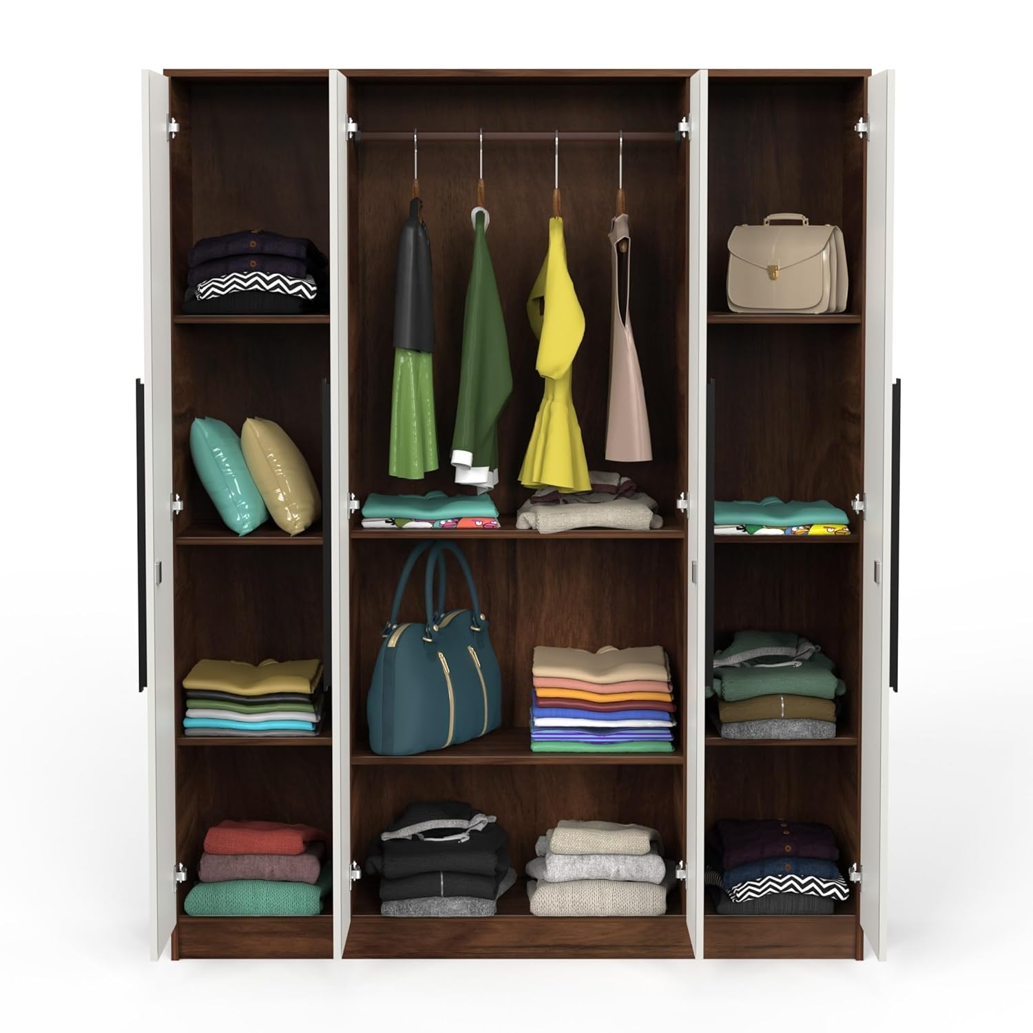 Product Color – Brown Maple & White, Sleek Long Handles, 11 Storage Cabinets or Shelves, Cloth Hanger, Lock Inlcuded