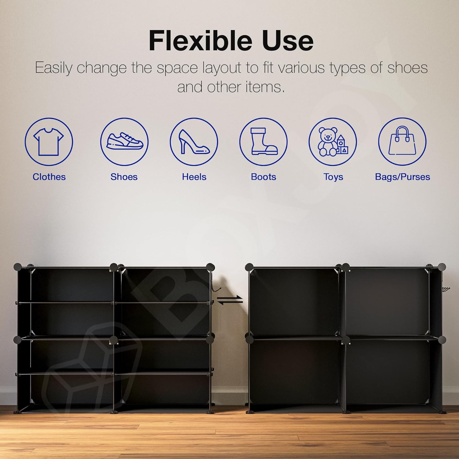 MULTIPURPOSE CABINET FOR SHOES & MORE: This versatile, foldable organizer also serves as a storage shelf or cupboard for clothes, bags, and bathroom essentials. The multipurpose cabinet can fit into small spaces, making it a great addition to your kitchen, bathroom, or entryway.