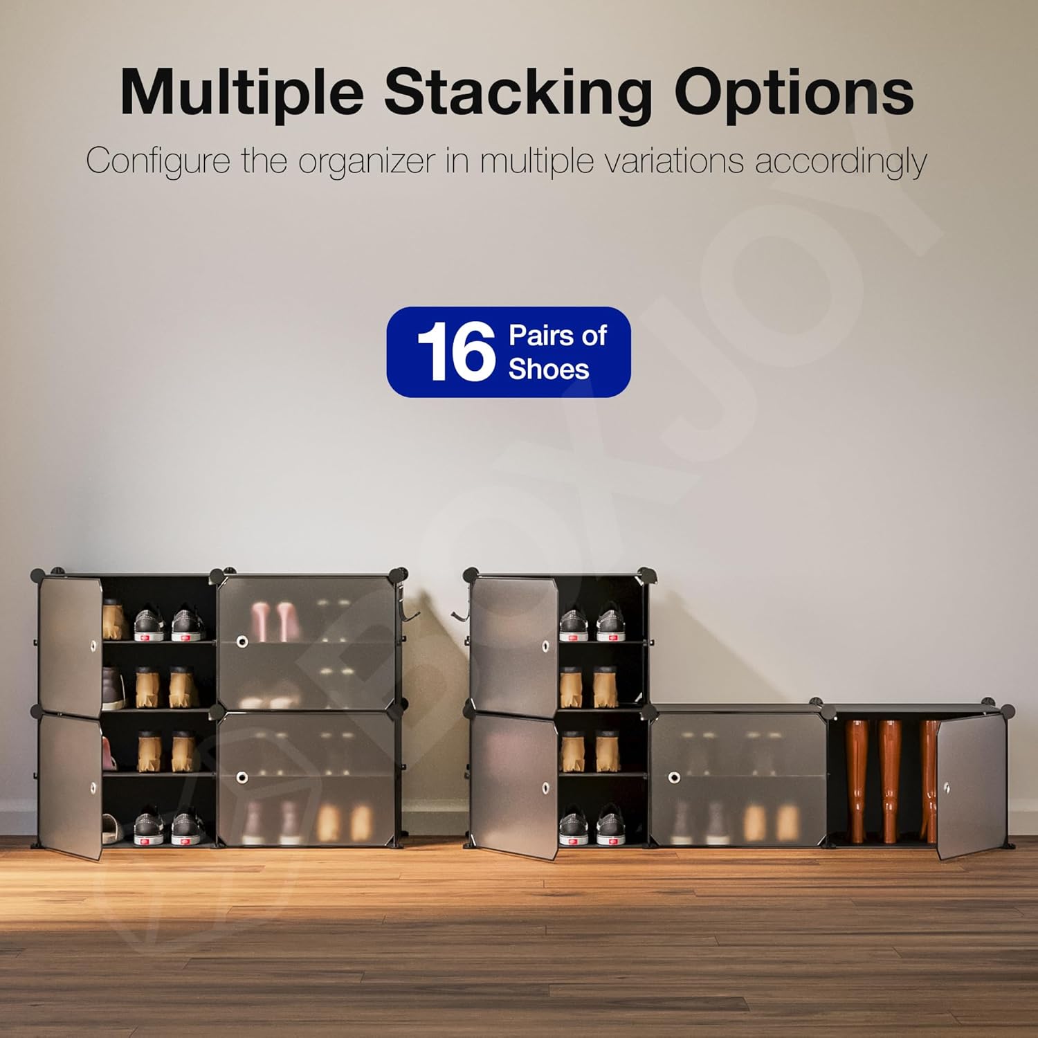 DURABLE MATERIAL & STURDY FRAME: Built with high-quality, waterproof PP plastic panels and a sturdy metal frame, this shoe rack is designed for durability, stability, and long-lasting use. The strong structure holds all your footwear and more without bending or sagging.