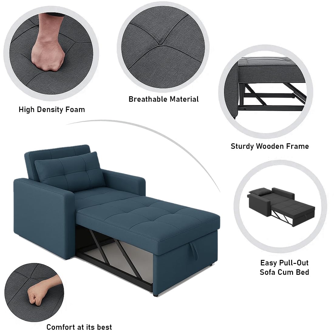 Seating Capacity: One seater converts into a bed