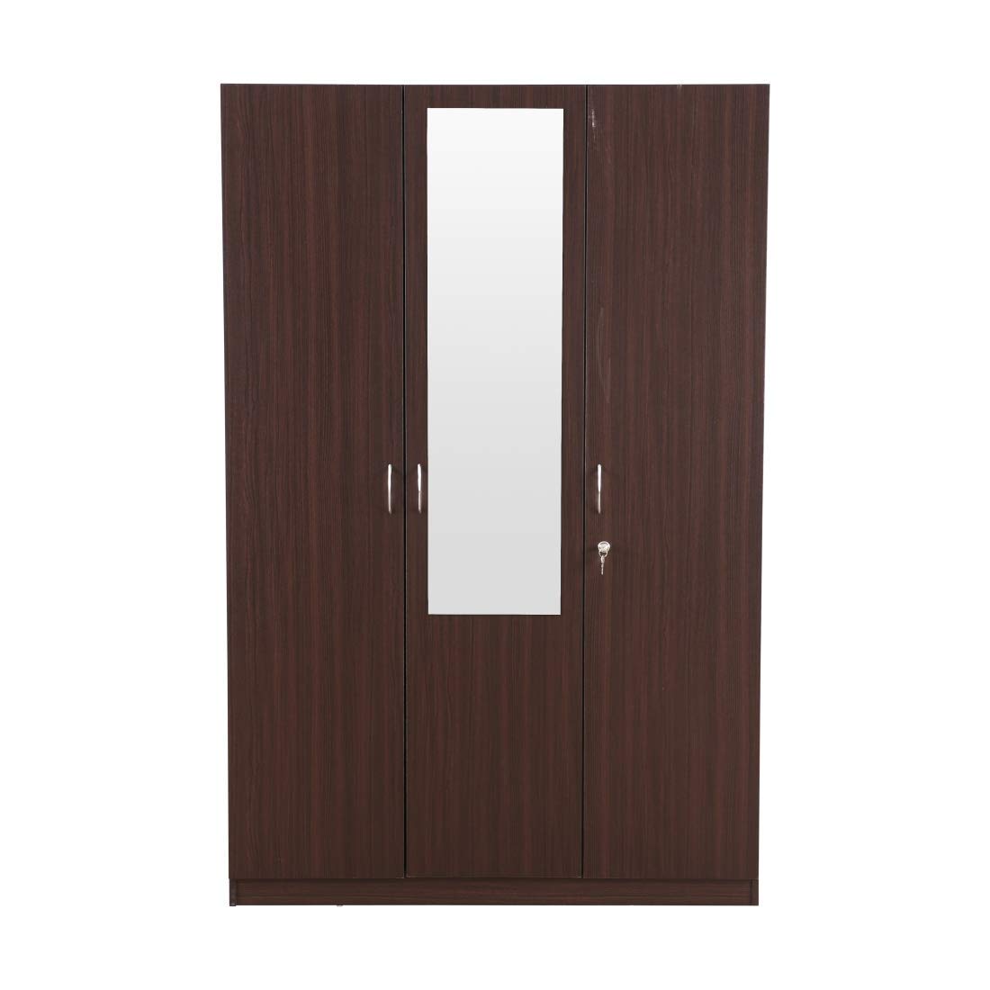 CASPIAN Furniture 3 Door Engineered Wooden Wardrobe with Middle Mirror (Walnut Finish)