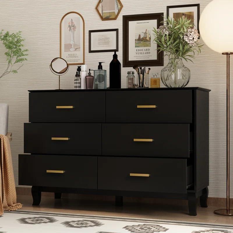 Chestify Furniture 6-Drawers Solid MDF Wood Chest of Drawers Sideboard Cabinet for Stylish Living Rooms and Bedrooms. Ideal Home Storage Solution & Decor Accent (Black, Lewis)