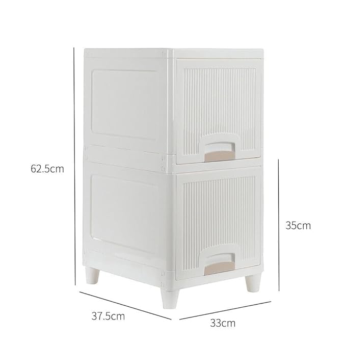 ChicDukaan Plastic Foldable Plastic Storage Cabinet | Stackable Multipurpose Wardrobe for Clothes, Kitchen, Toys and Bedroom | Space-Saving Modular Almirah with Doors & Shelves | (White) (2 Tier)