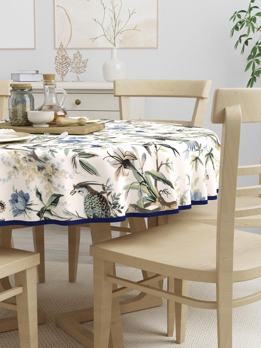 Clasiko 100% Cotton 6 Seater Round Table Cover; 72×72 Inches; Blue Flowers & Birds