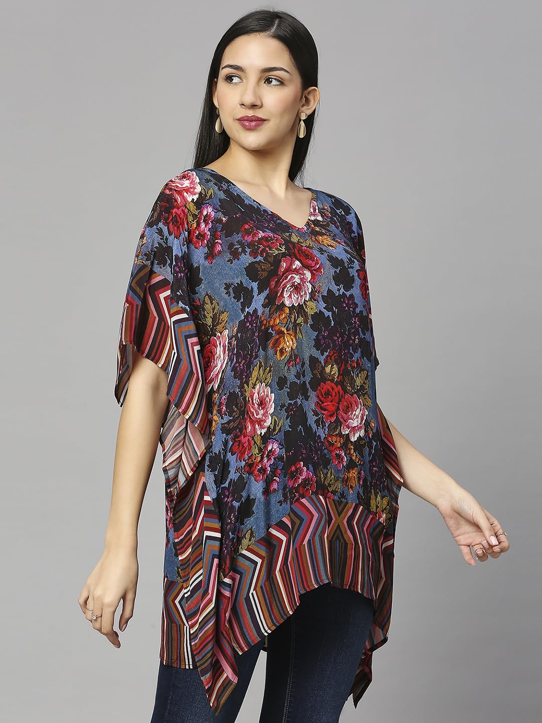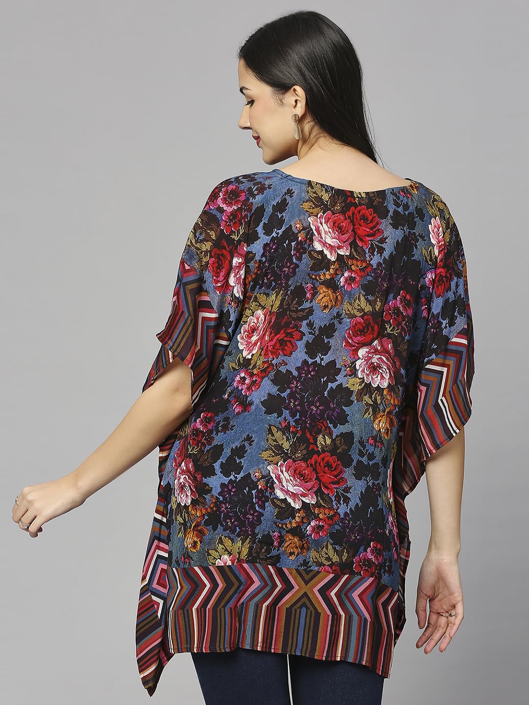 CLOTH HAUS INDIA Women’s || Cupro Viscose Material || Multicolor Printed Short Kaftan || Midi Dress/Night Gown || Short Length Night Wear Kaftan Dress Loungewear