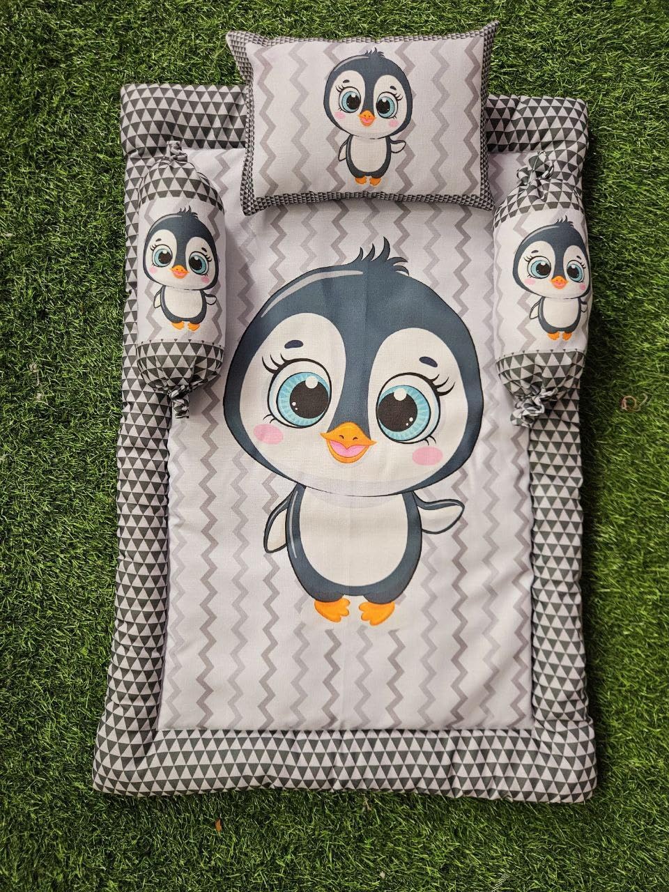 COMPLETE SET: 4-piece baby bedding set includes mattress (gadda), pillows, and bolsters designed for newborns aged 0-1 year