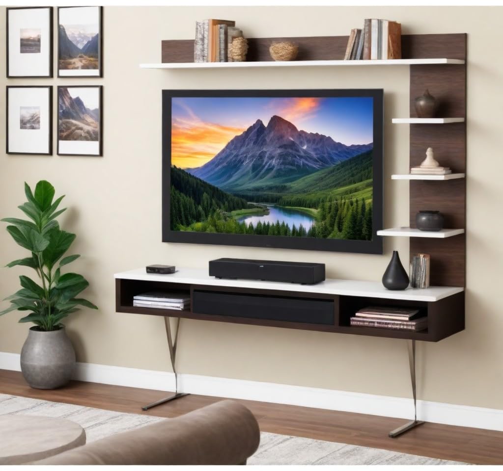 Dark Wenge and wisdom white Countertops Ensure Ample Storage Space. Wall-Mount Design Doesn’t Take Much Space and Frees Up Valuable Floor Space. The Middle Compartment is Intended to Keep Your Set-Top Box While Books, Decorative Items & 4 Fully Functional single side Floating Open Shelves for Organize and Display Your Decorative Objects.