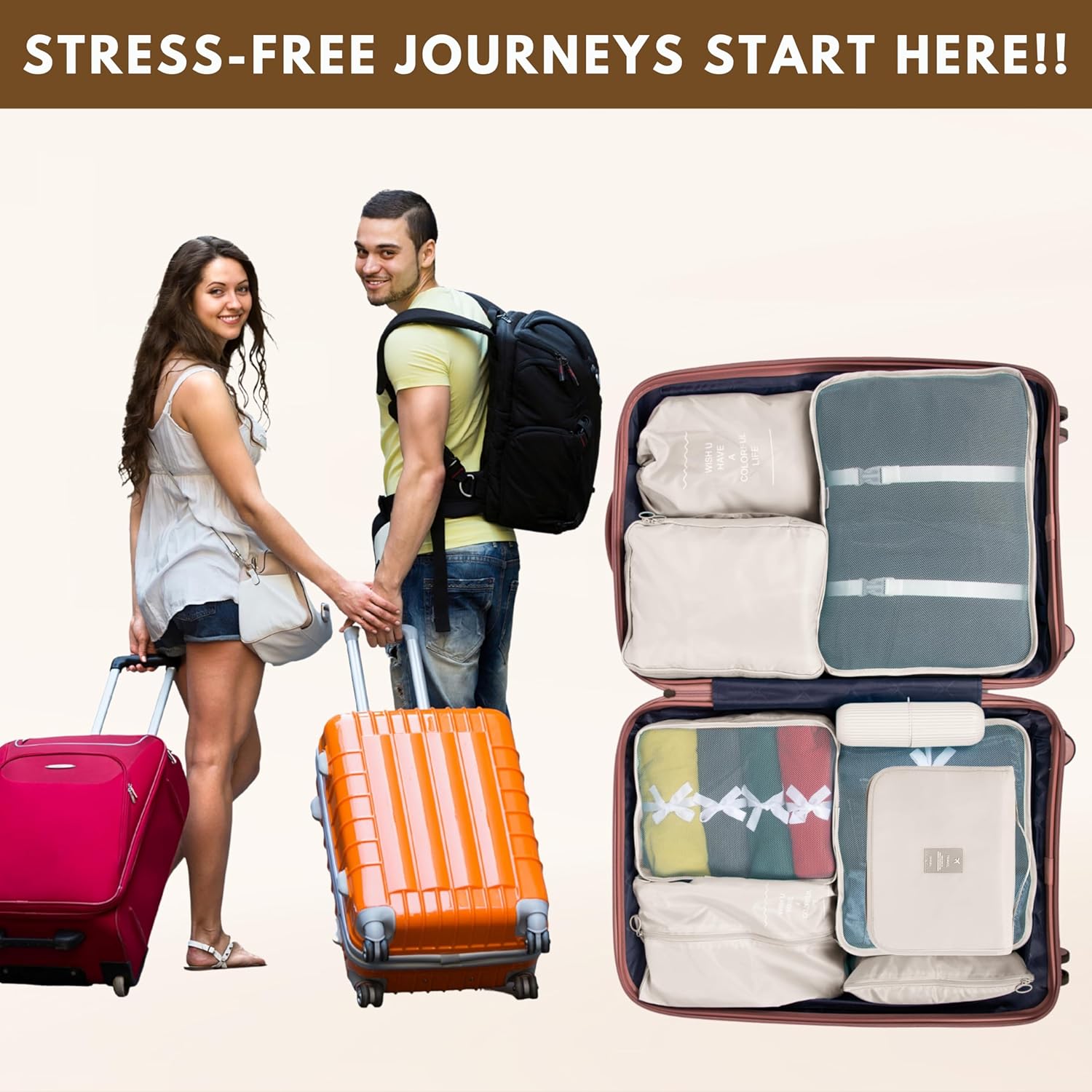 CARE INSTRUCTIONS FOR PACKING CUBES TRAVEL ORGANIZER: Hand wash your compression packing cubes for travel with cold water and air dry in a well-ventilated area away from direct sunlight. This simple maintenance routine ensures your travel bag organiser stays in great condition.