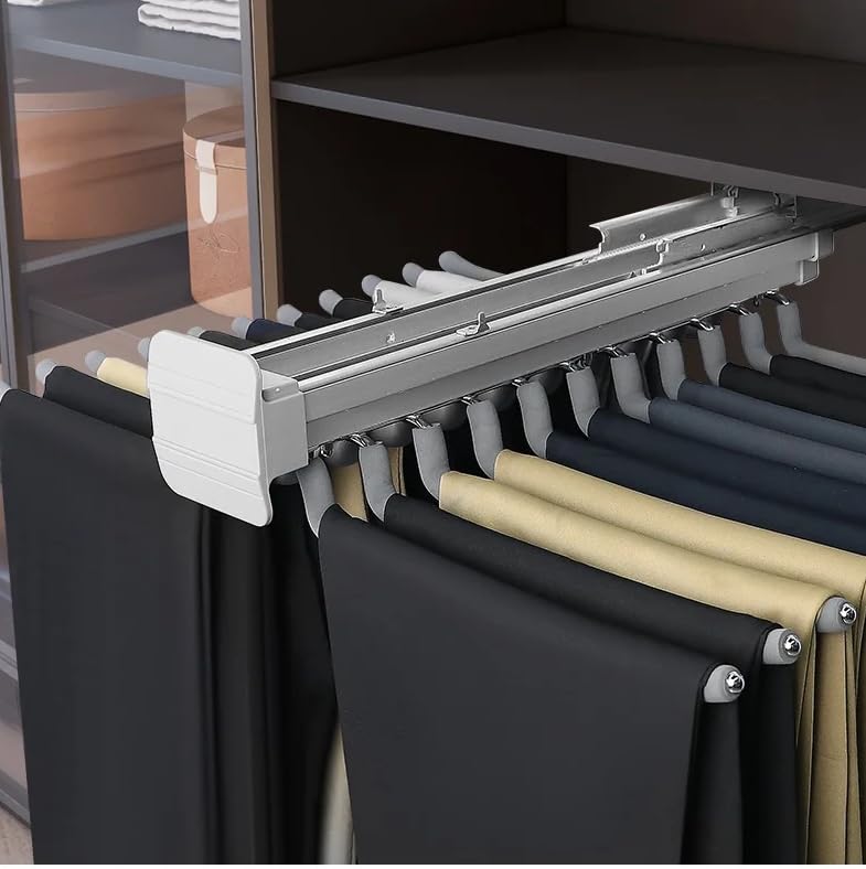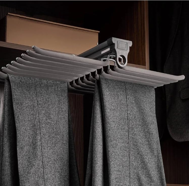 DBR Metal Kitchen Soft Close Pull-Out Trouser/Saree Rack For Wardrobe Top-Mounted Hanging Trousers Rack (Double Row Pullout Gray Color), 1 Count