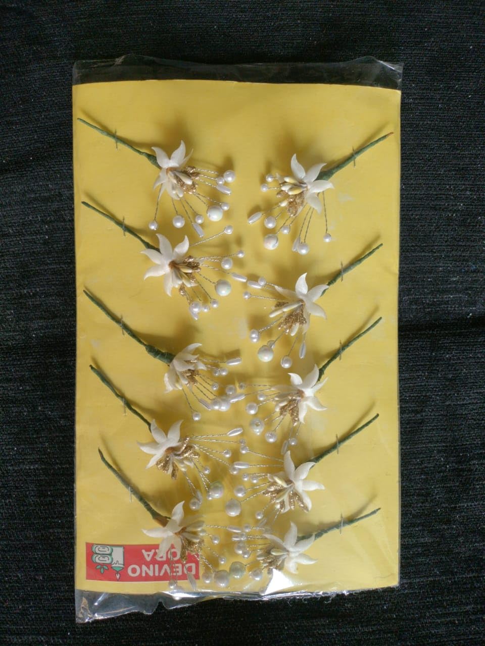 Devino Ora Pearl Artificial Bridal Wedding/hair flower accessories For Women’s/gajra/Juda Pin/Juda Bun/Hair Clip/artificial flowers For hair / – White And Golden (10)