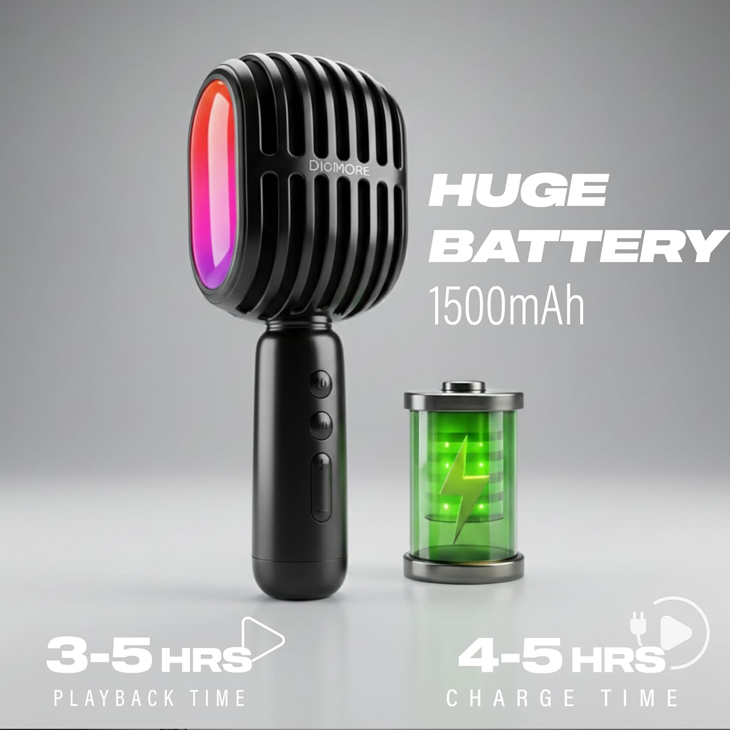 DIGIMORE Wireless Bluetooth Karaoke Microphone with 10W Speaker | Portable Handheld Mic | RGB Lights | Bluetooth 5.3 | Recording Support | Type-C Charge | Ideal for Singing, Parties & Kids (D-1300)