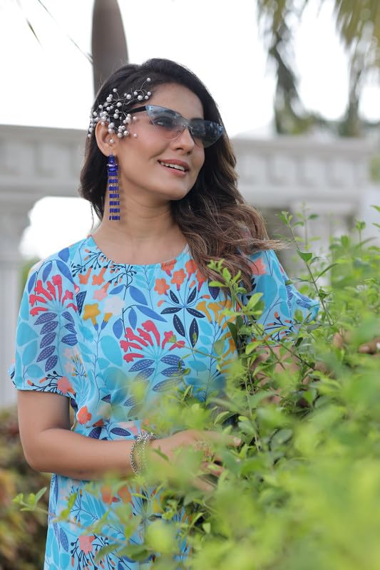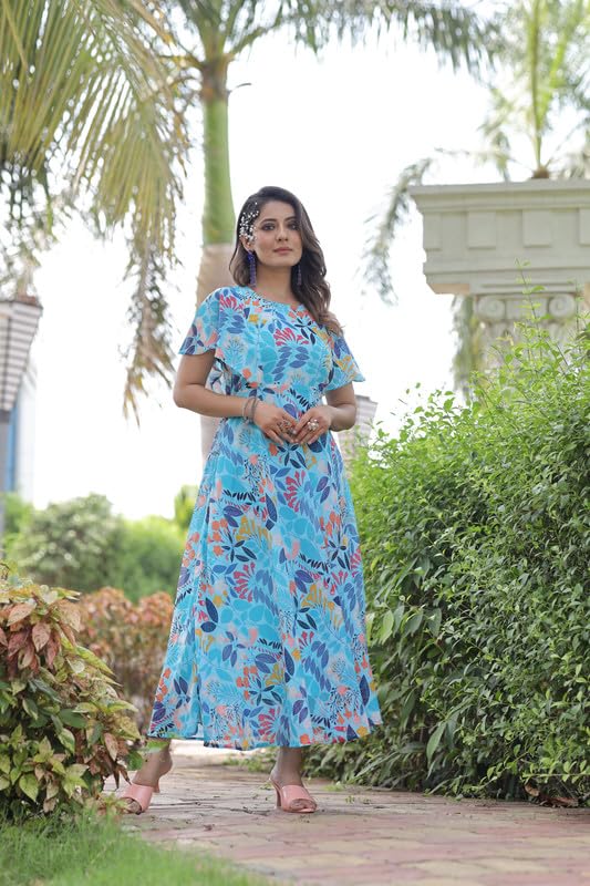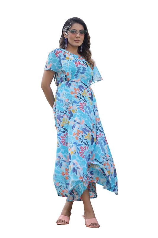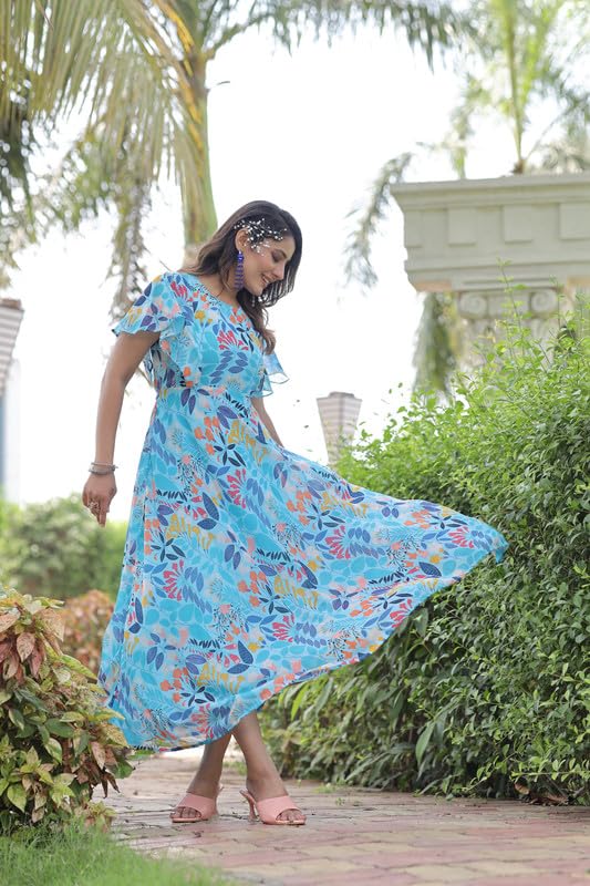 DIVINE INDIA Trendy Women’s Georgette Flare Dress/Midi Comfortable and Elegant Wear Color Multicolored MAA13670055