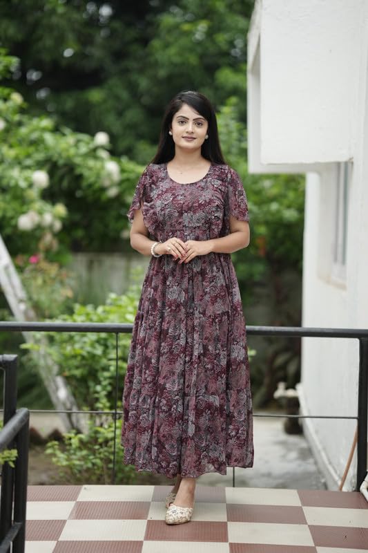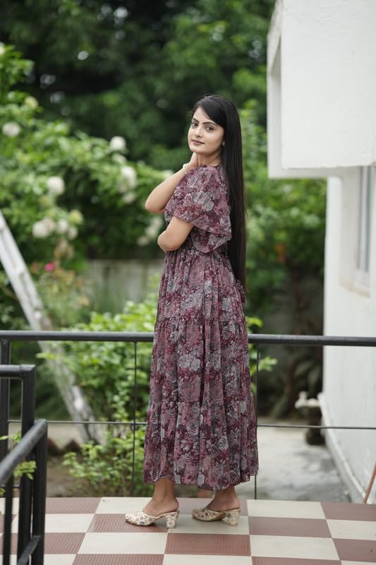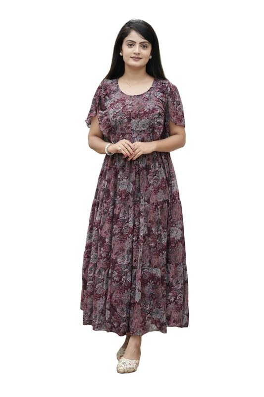 DIVINE INDIA Trendy Women’s Georgette Flare Dress/Midi Comfortable and Elegant Wear Color Multicolored MAA13670069