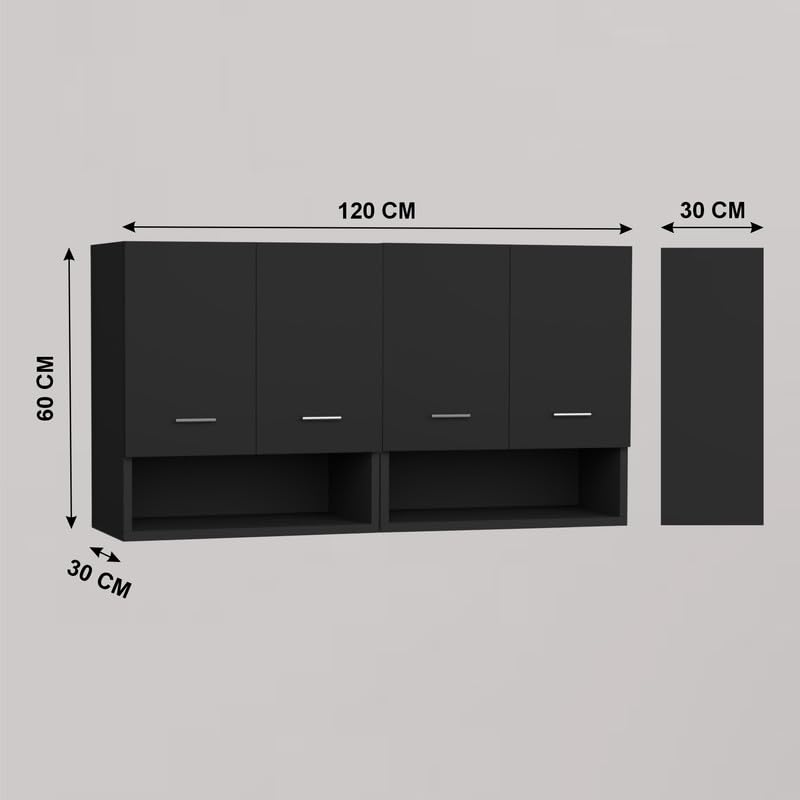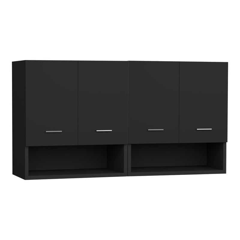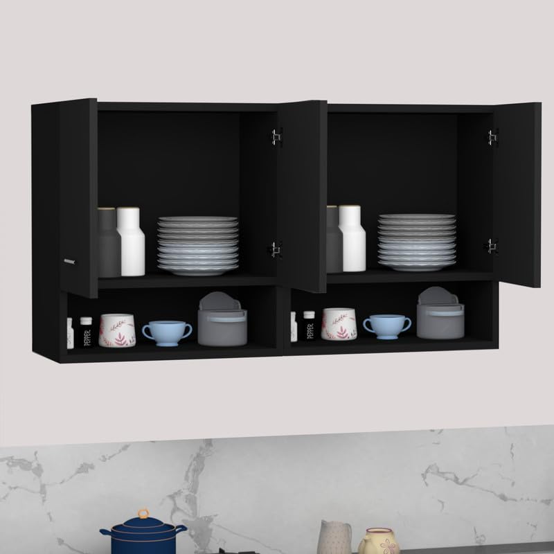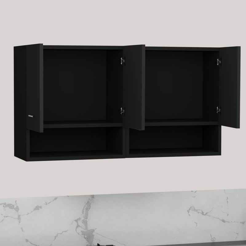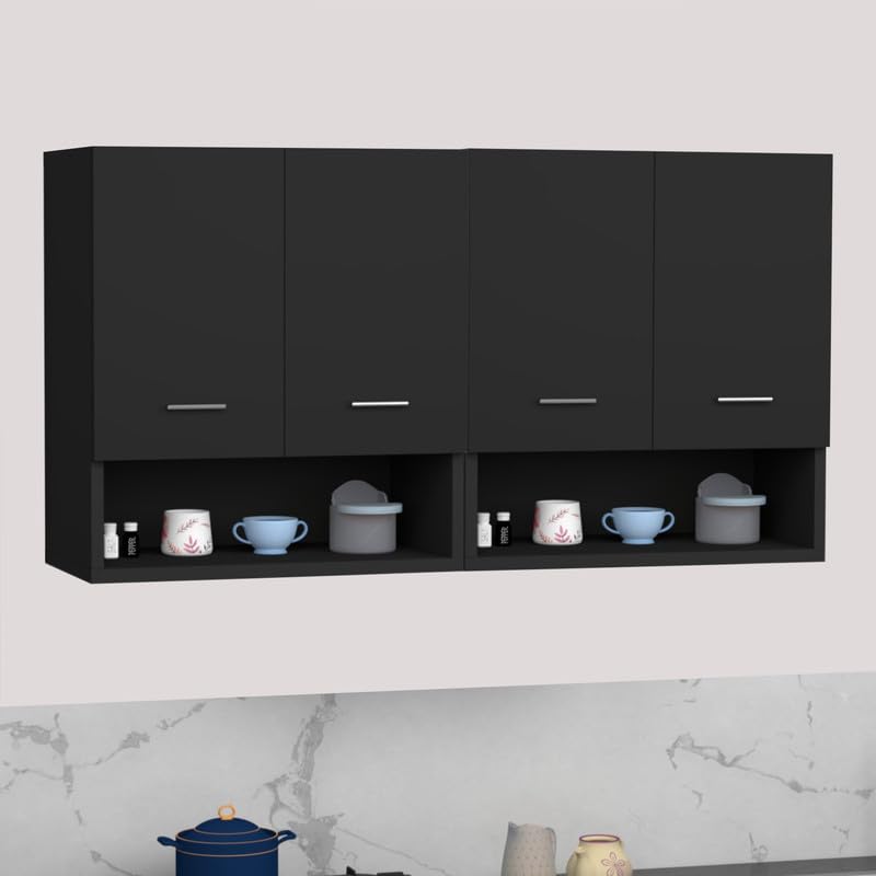 DIVYSA Multipurpose Use Modern Wall-Mounted Kitchen Cabinet with Doors, Open Shelf Design, and Dual Compartment Storage ? Ideal for ? Perfect for Modular Kitchen, Office, Color: Black