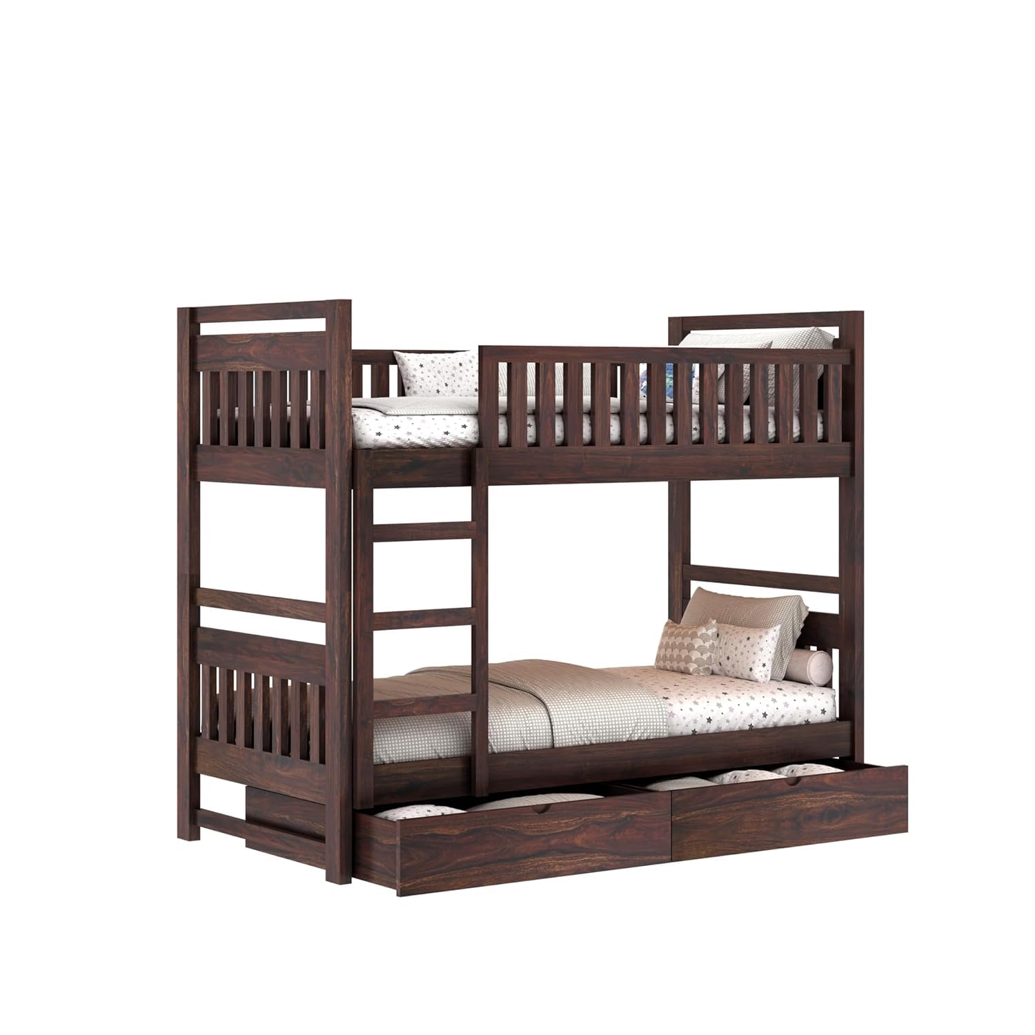 Dreamydesks Sheesham Wooden Bunk Beds for Adults/Kids/Children with 2 Drawer Storage – Wooden Double Bunk Bed with Ladder for Bedroom Living Room (Walnut, with Drawer)