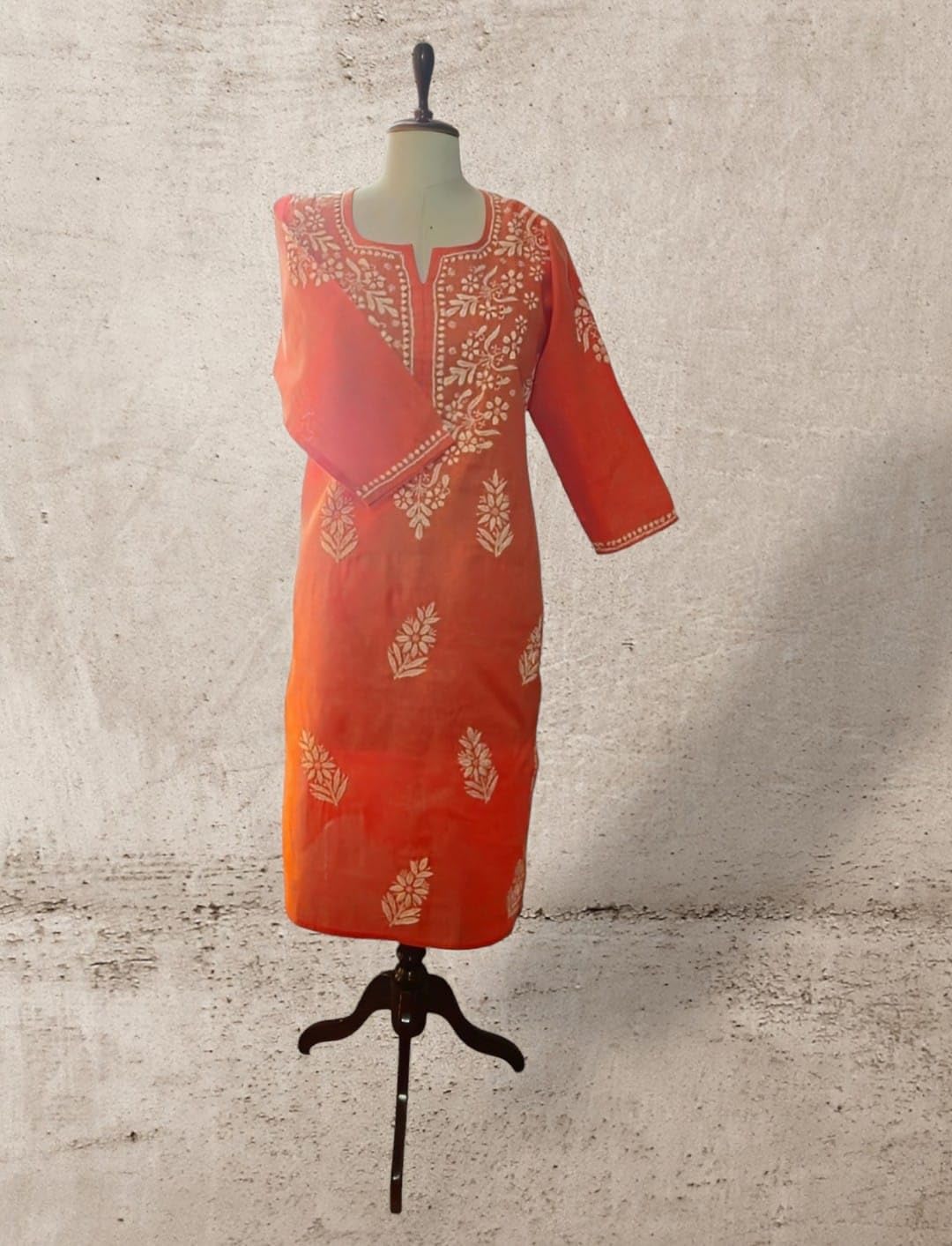 Eddika Women’s Hand-Embroidered Chikankari Khadi Cotton Kurti