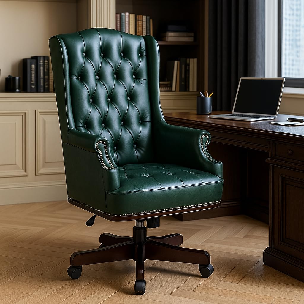 Ergonomic Comfortable Executive Office Study Home Visitor Computer Student Stool Work from Home Study Chair or Lawn Garden Rest Chair with Leather Cushion seat Back, with arm Chair